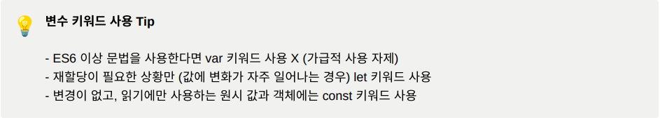 - 즉, 함수 외부에서 var 키워드로 선언한 변수들은 코드 블록 안에 있더라도 모두 전역 변수다.